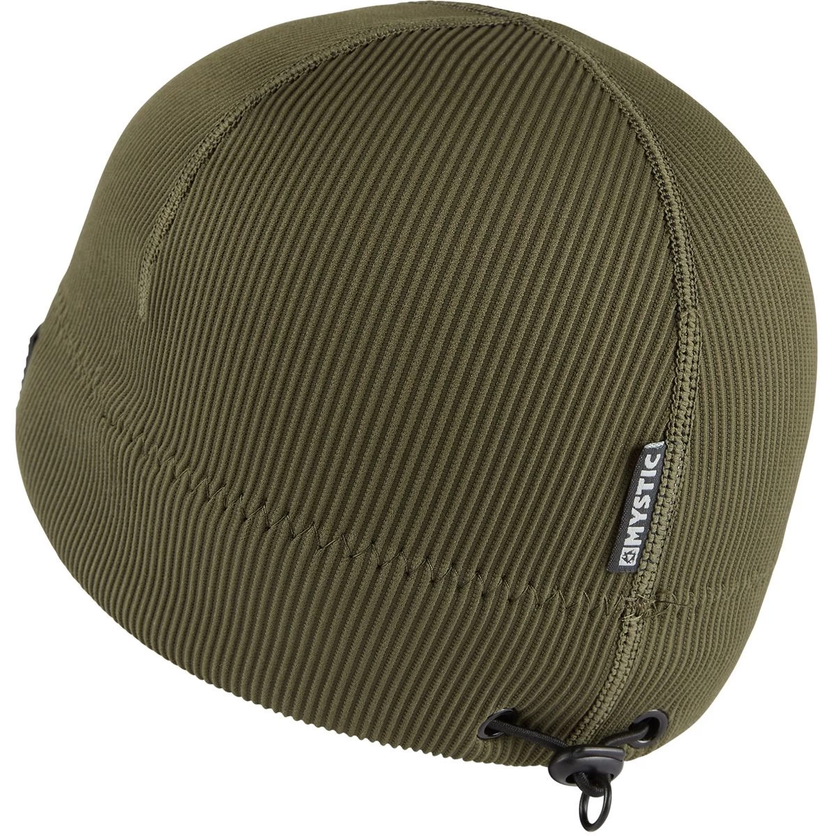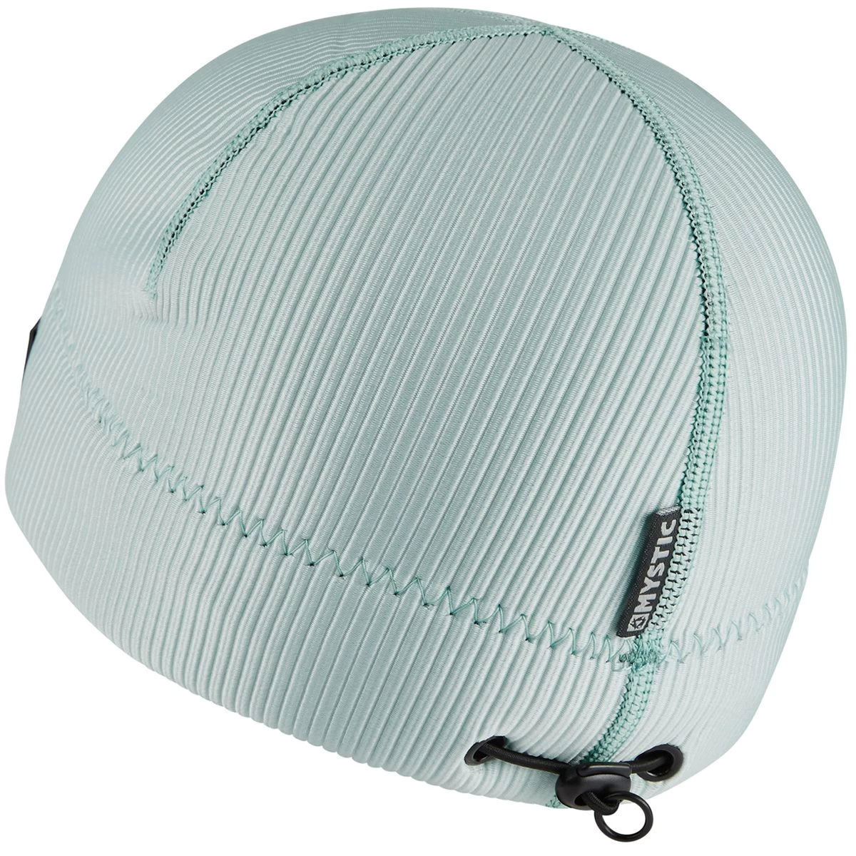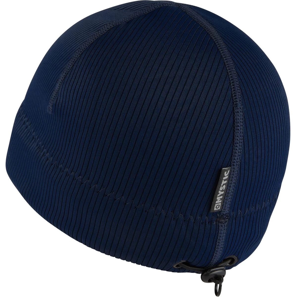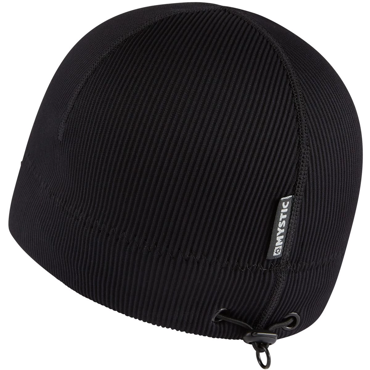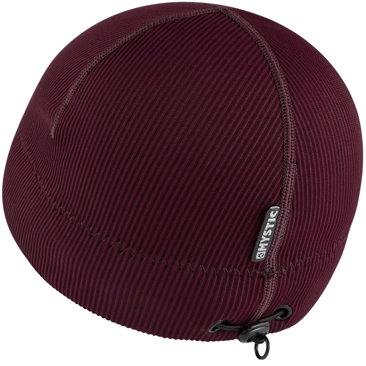 Loser Leash elastic string loop inside of the beanie: Use a simple larks-head knot to tie the loser leash to the zipper pull webbing of your wetsuit -